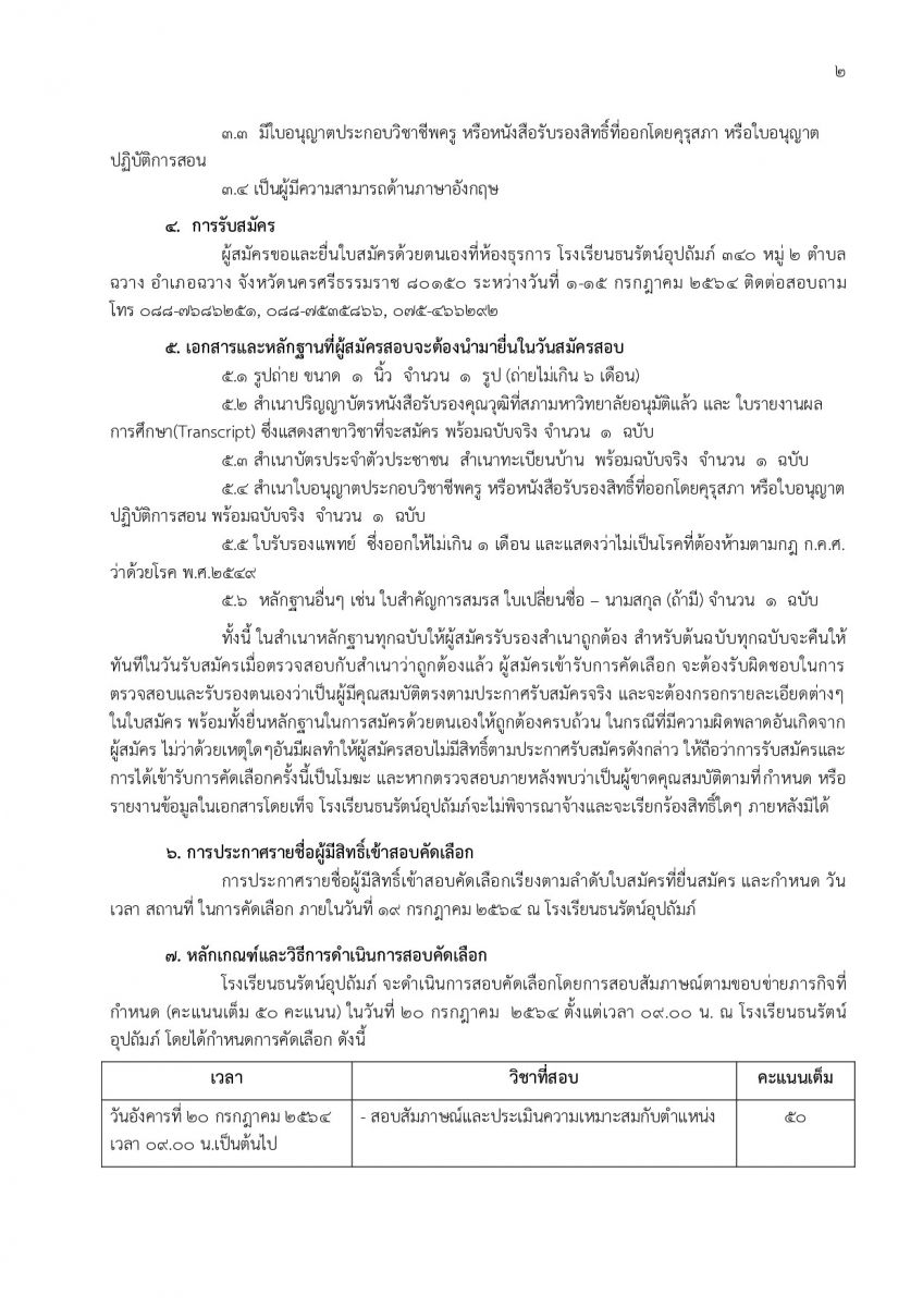 ประกาศรับสมัครครูผู้สอนวิชาภาษาอังกฤษ
